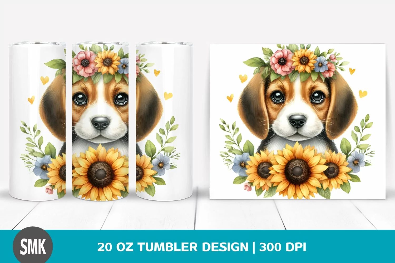 Similar Design Products to Watercolor Baby Beagle, Sunflower | 20 oz Tumbler