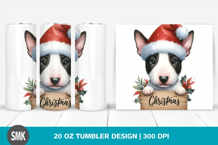 Watercolor Cute Baby Clipart Png Sublimation Tumbler Bullterrier Santahat Bigeyes