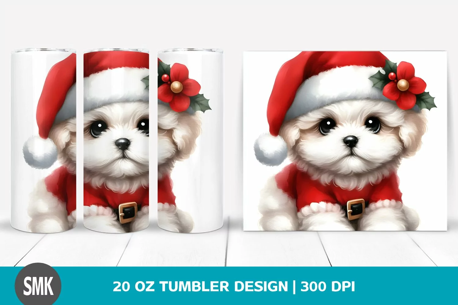 Watercolor Cute Baby Clipart Png Sublimation Tumbler Santahat Bichpoo Bigeyes