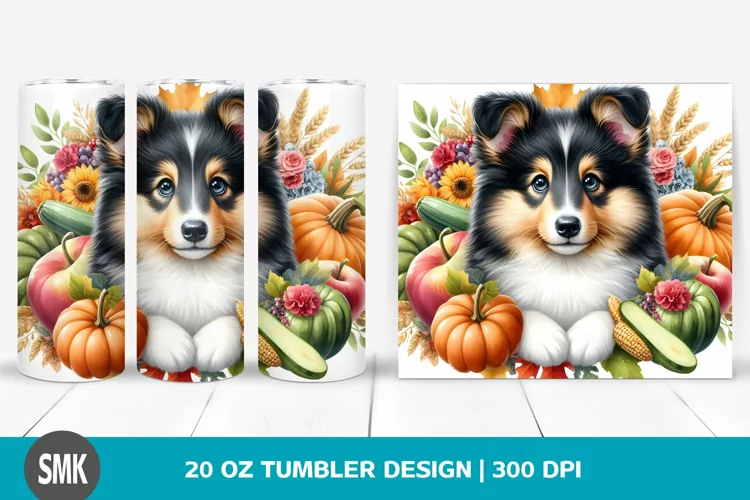 Watercolor Cute Baby Collie Clipart | 20 oz Tumbler