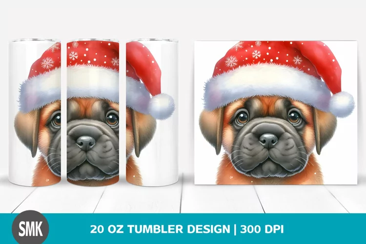Watercolor Cute Baby Clipart Png Mastiff Sublimation Tumbler Whitebackground Santahat