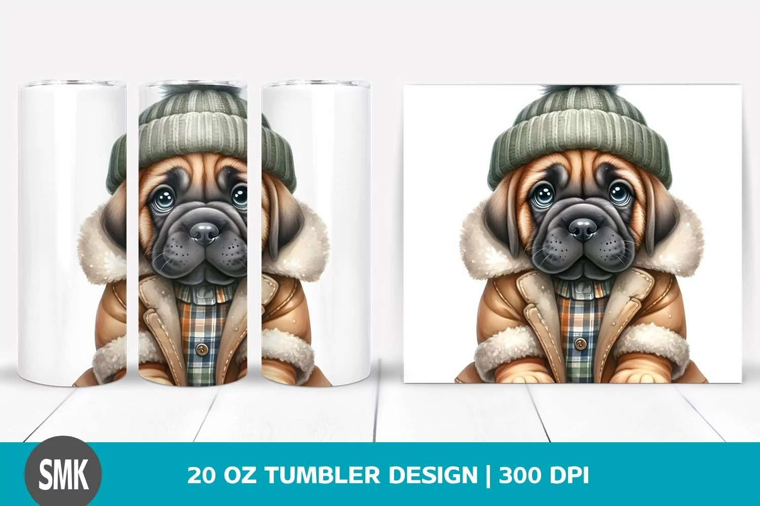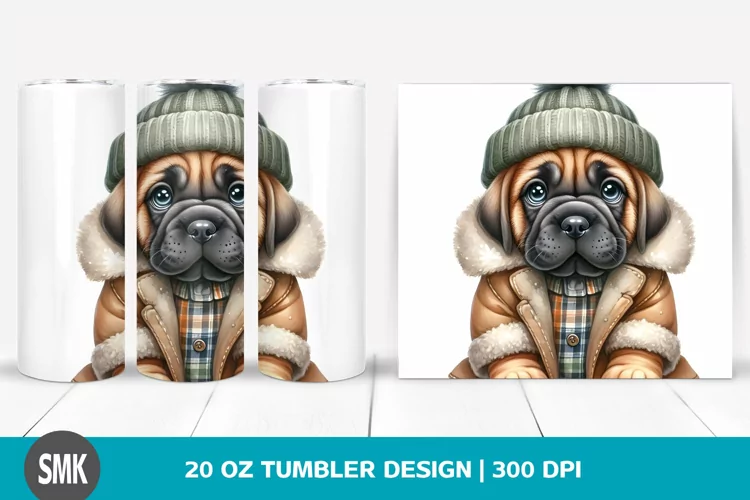 Watercolor Cute Baby Winter Clipart Png Mastiff Sublimation Tumbler Whitebackground