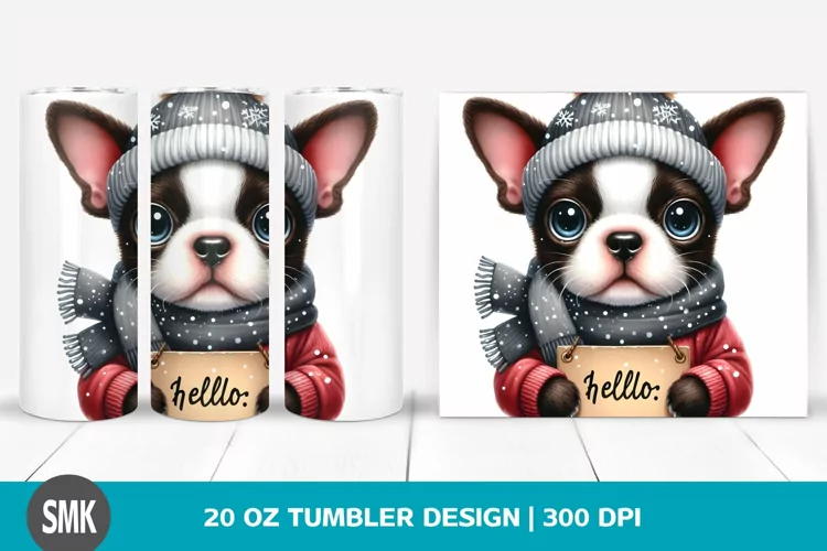 Cute Baby Winter Clipart Png Adorable Sublimation Tumbler Whitebackground Bostonterrier