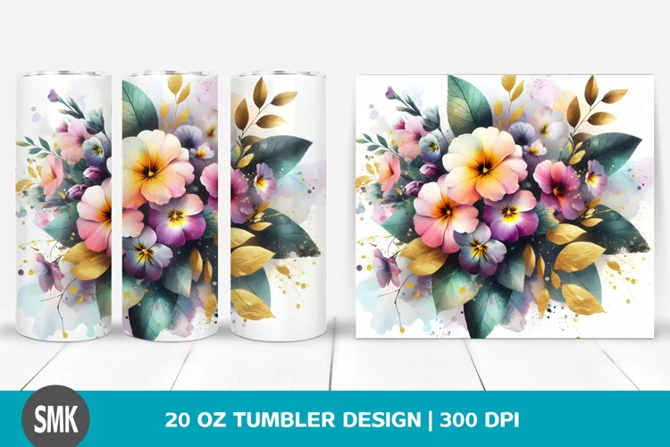 Watercolor Abstract Clipart Vibrant Bouquet Png Sublimation Primrose Tumbler Goldfoil