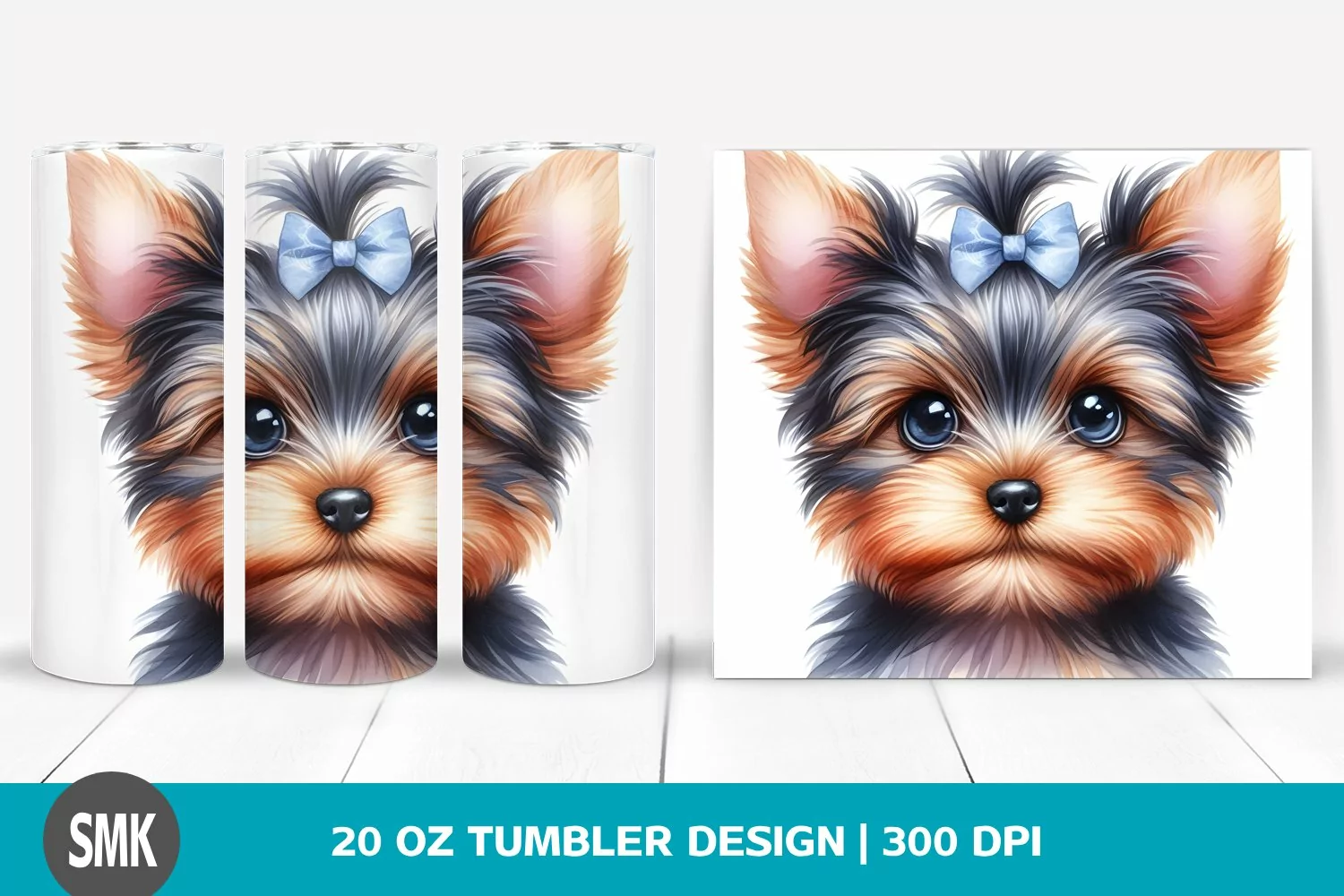 Watercolor Cute Baby Clipart Png Sublimation Tumbler Centered Yorkshireterrier Bigeyes