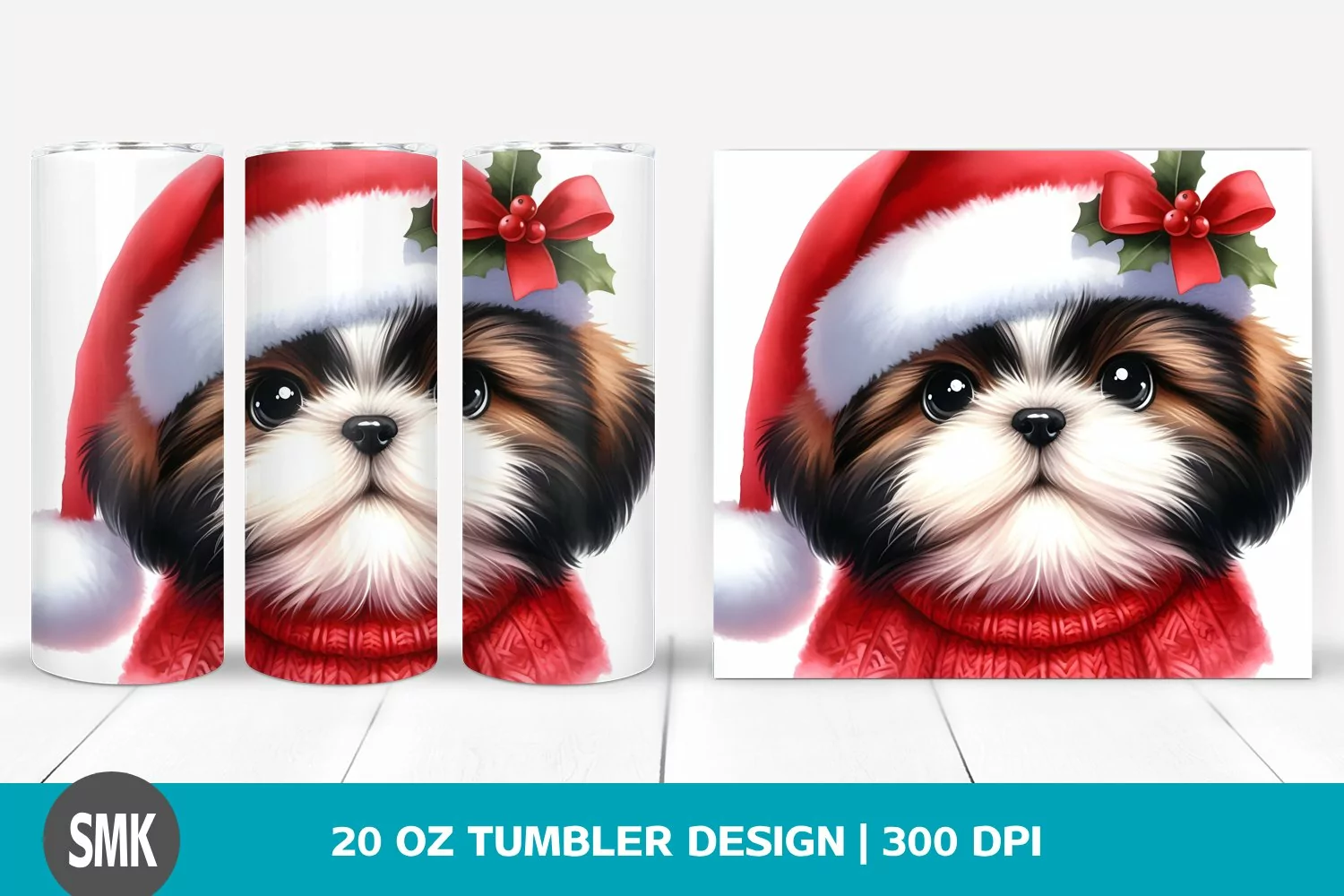 Watercolor Cute Baby Clipart Png Sublimation Tumbler Shihtzu Santahat Bigeyes