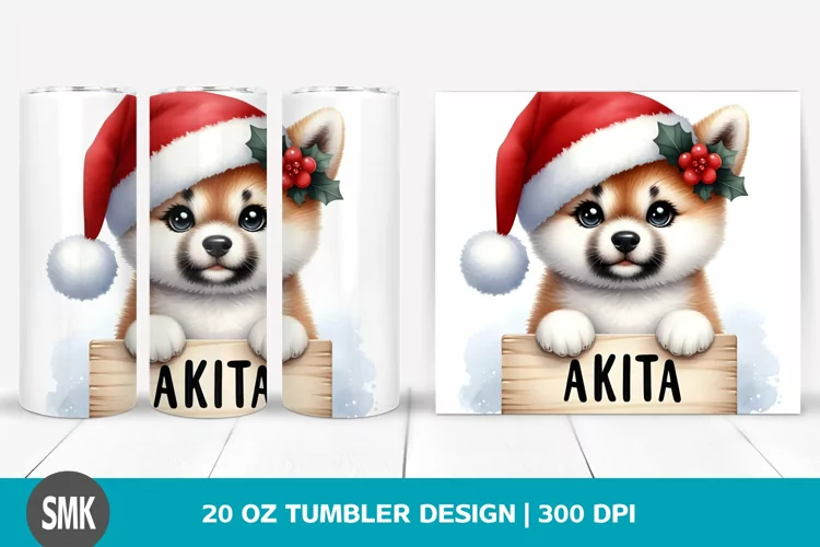 Baby Clipart Png Sublimation Akita Tumbler Whitebackground Santahat Centered Bigeyes