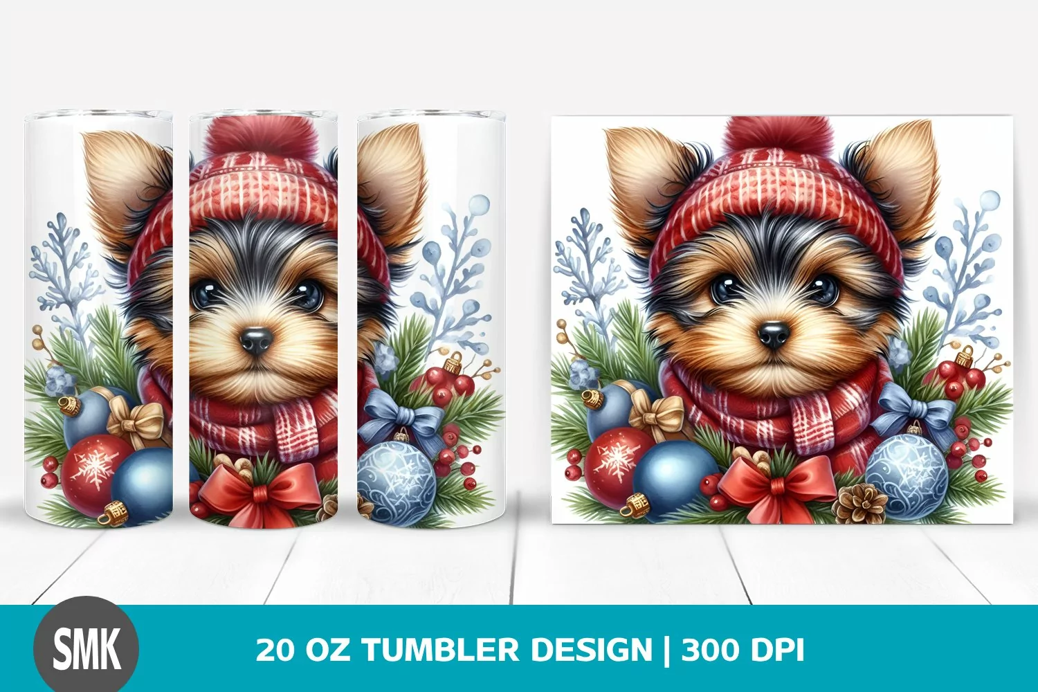 Watercolor Cute Baby Clipart Png Sublimation Tumbler Centered Yorkshireterrier Winterornaments