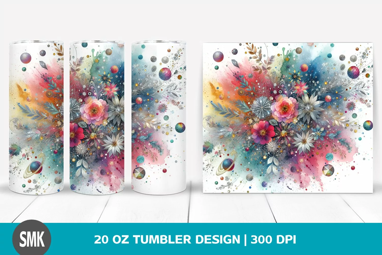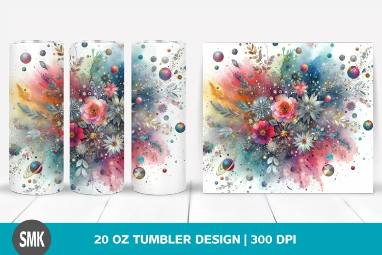 Similar Design Products to Colorful Watercolor Particles Silver Foil Tumbler | 20 oz