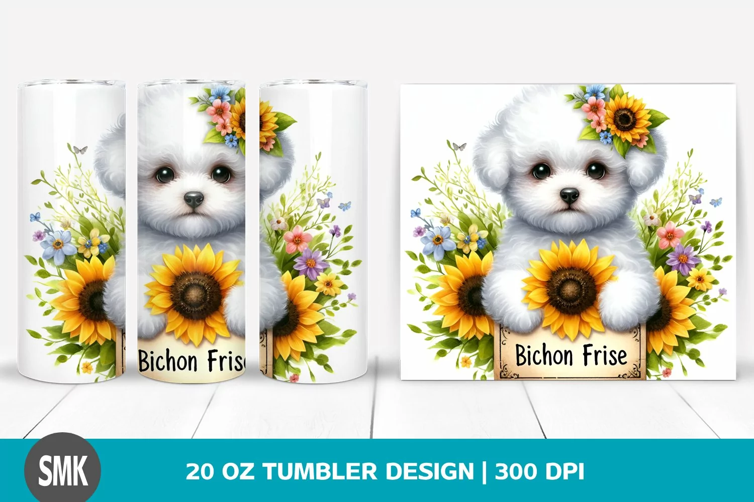 Cute Baby Flowers Clipart Png Sublimation Tumbler Centered Sunflower Bichonfrise