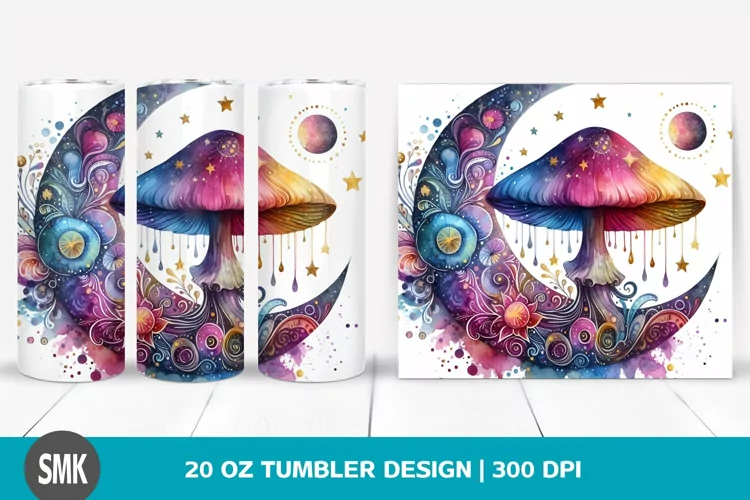 Watercolor Colorful Celestial Clipart Png Mushroom Magical Sublimation Tumbler Astral