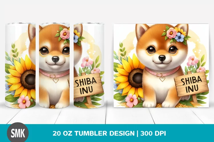 Similar Design Products to Watercolor Shiba Inu Baby Sunflower | 20 oz Tumbler