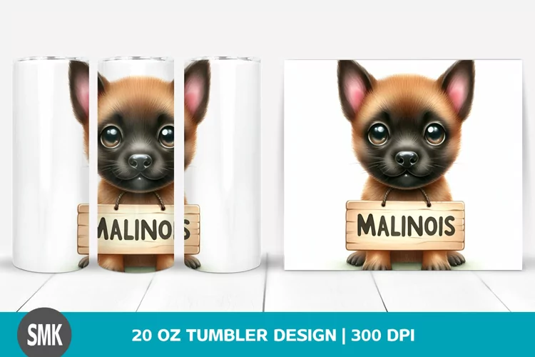 Watercolor Cute Baby Malinois, Sign | 20 oz Tumbler example image 1