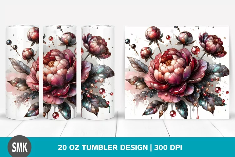 Detailed Glossy Peonies Material | 20 oz Tumbler