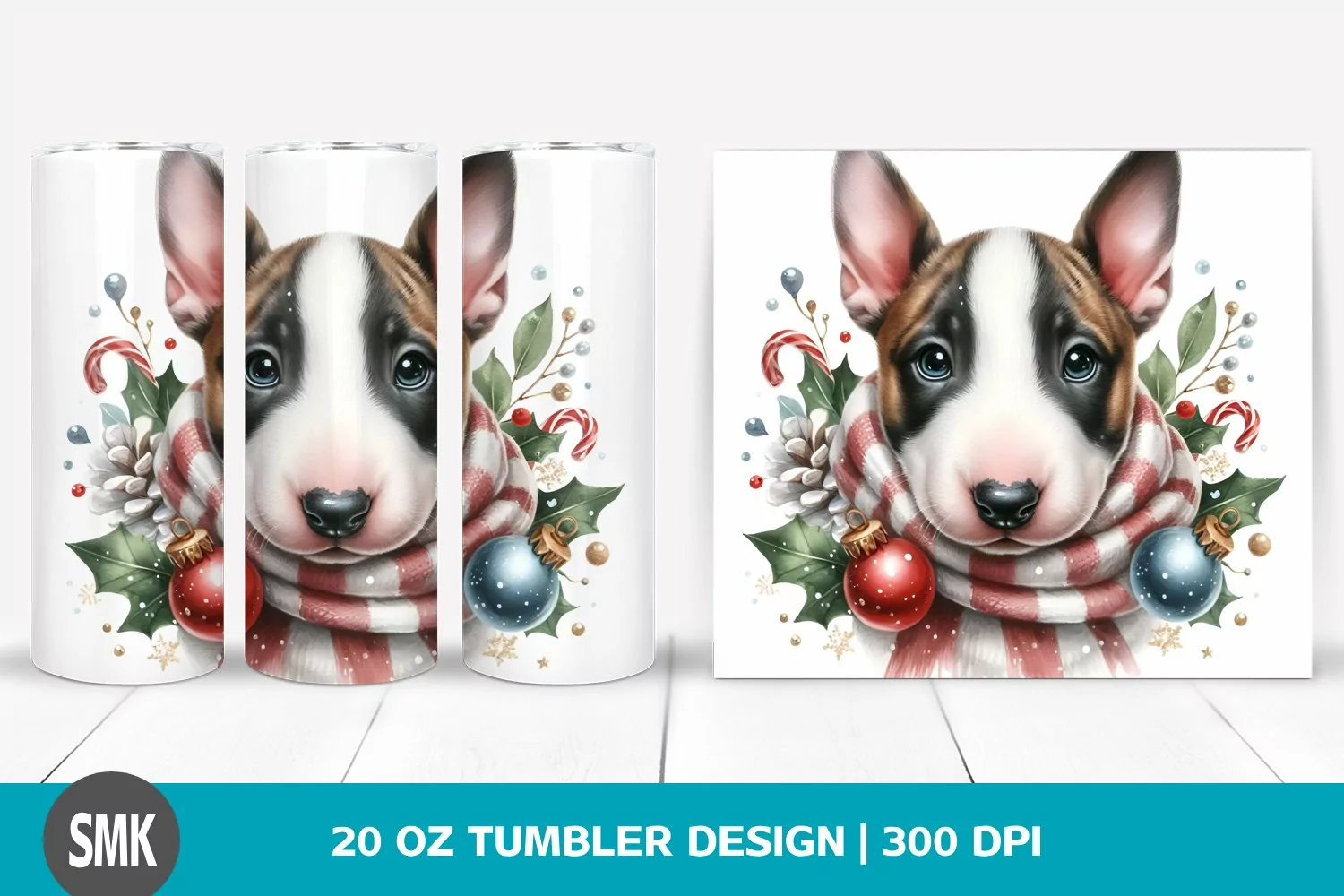 Watercolor Cute Baby Clipart Png Sublimation Tumbler Bullterrier Bigeyes Wrappedwinterornaments
