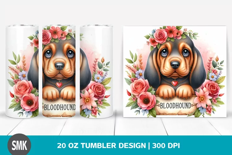 Similar Design Products to Watercolor Cute Bloodhound Colorful Flowers 20 oz Tumbler