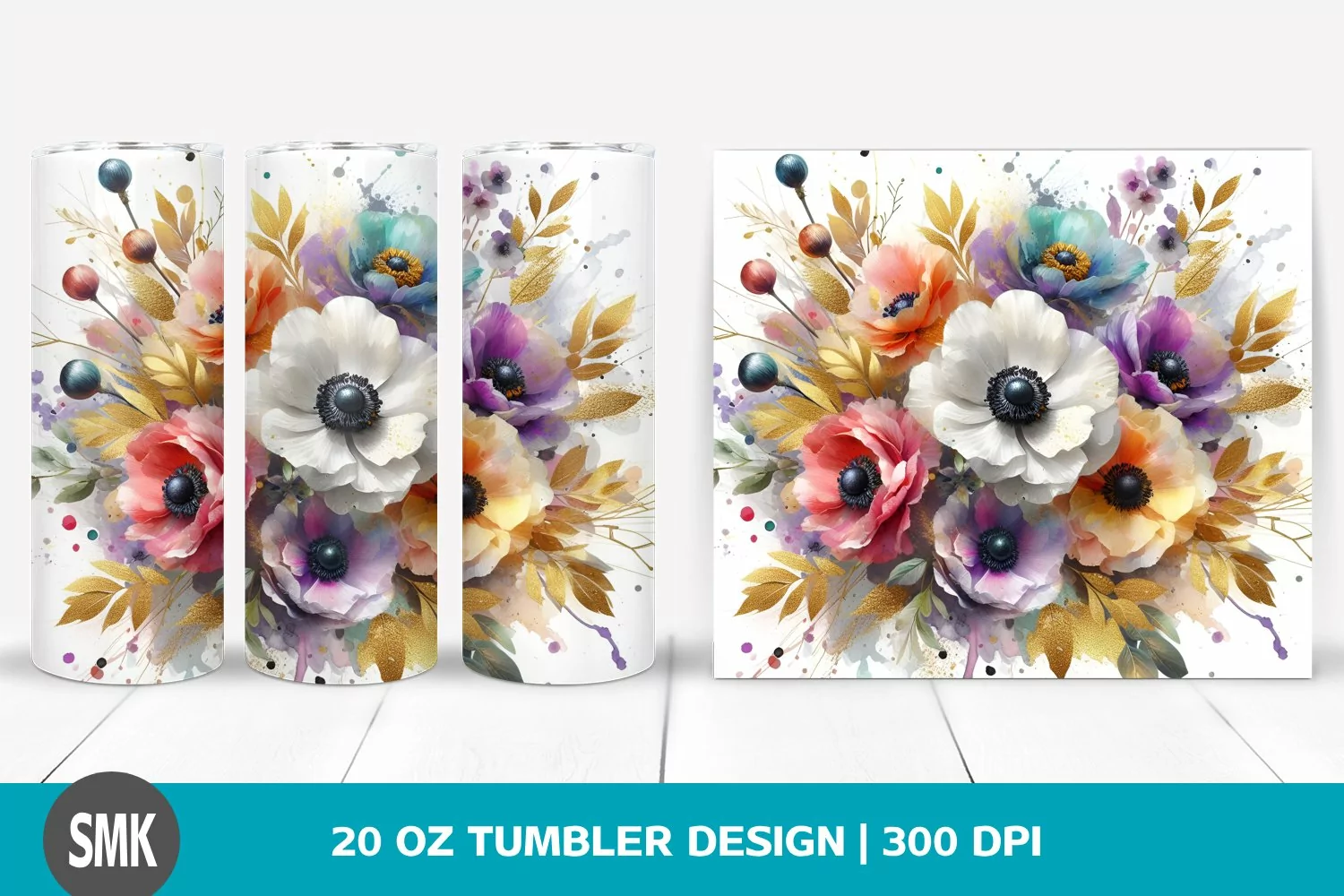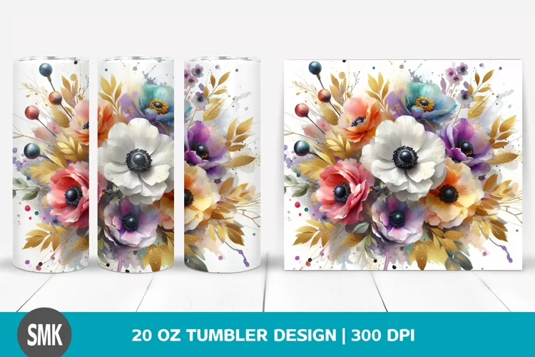 Watercolor Splash Abstract Clipart Anemone Bouquet Png Sublimation Tumbler Goldfoil