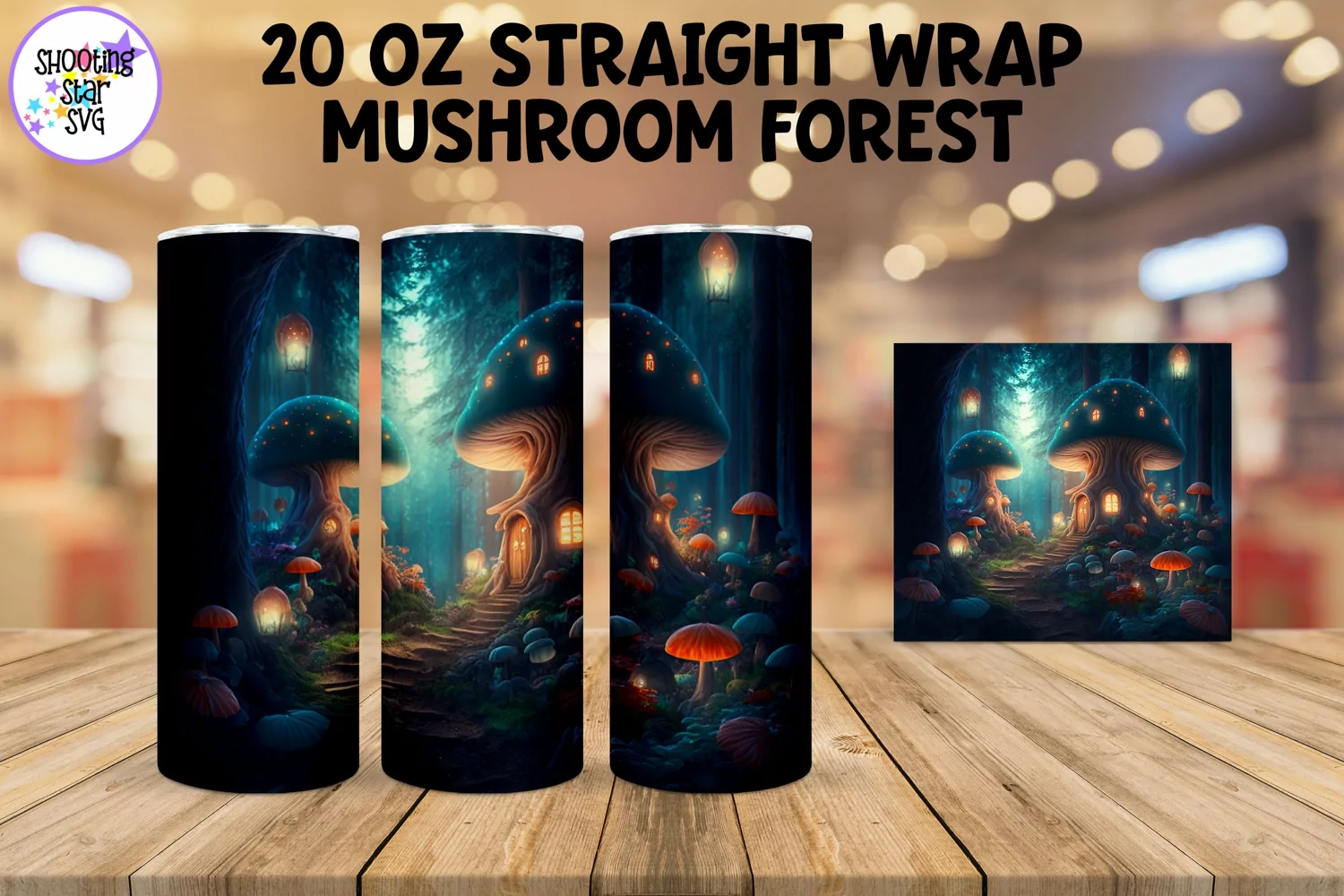 Photo Realistic Fantasy Forest Fairy Forest Sublimation Waterslide Starry Night Sky 20 Oz Straight Tumbler Wrap Glowing Mushrooms