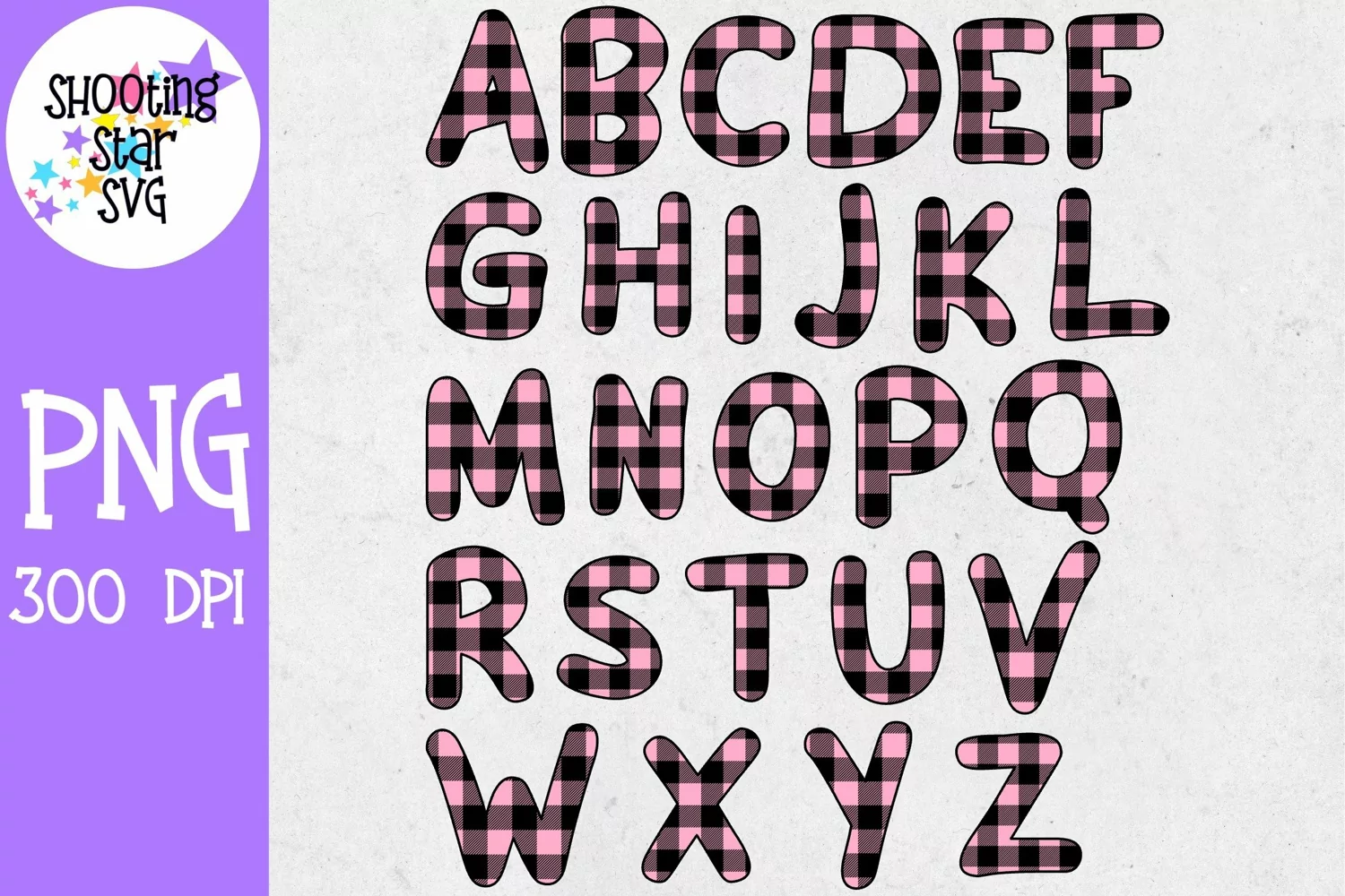 Pink Buffalo Plaid Alphabet Set - Sublimation Alphabet example image 1