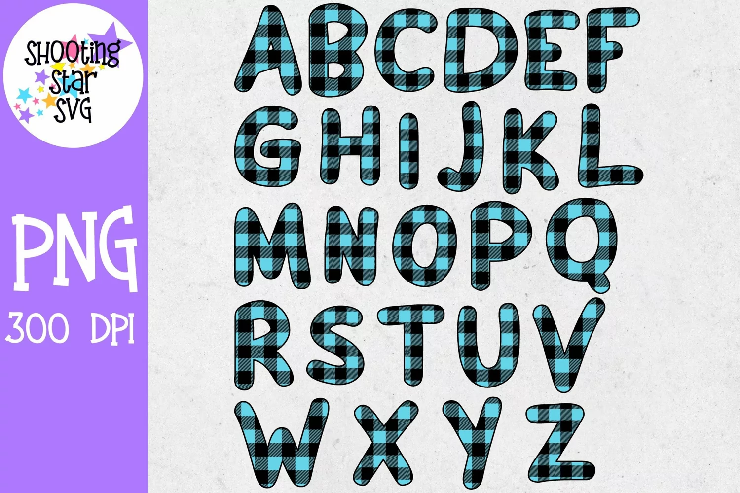 Light Blue Buffalo Plaid Alphabet Set - Sublimation Alphabet example image 1