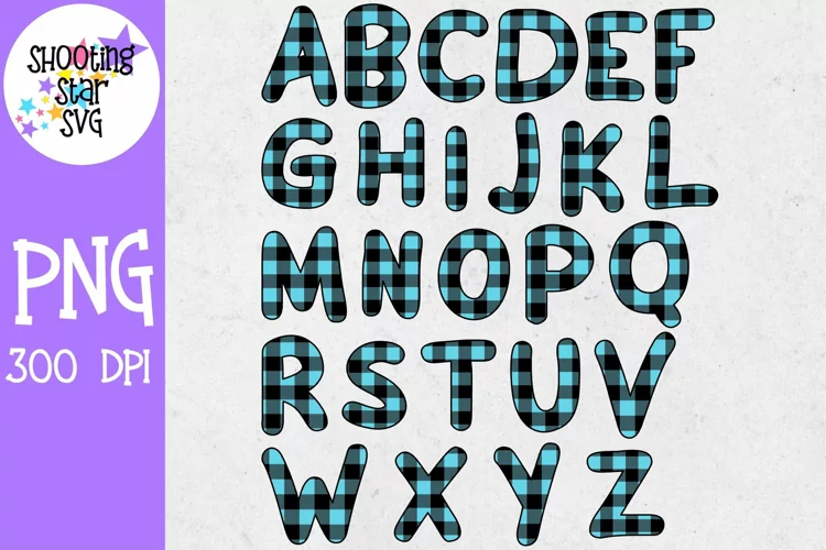 Sublimation Alphabet Buffalo Plaid Alphabet Light Blue Buffalo Plaid