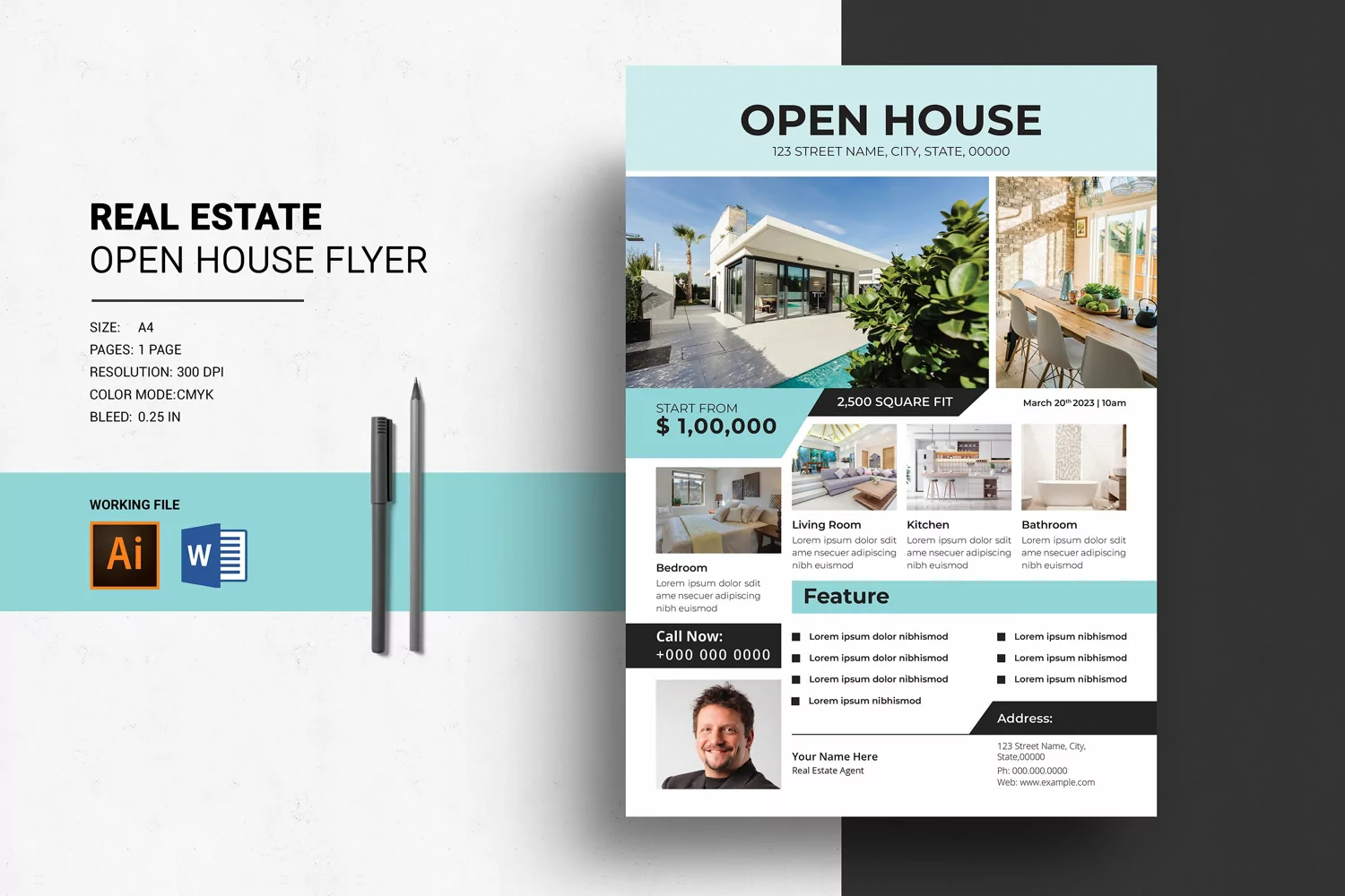 Open House Flyer is now ready for download! you can easily create an elegant and sophisticated theme. This template is ready to print and comes in very simple layers.
