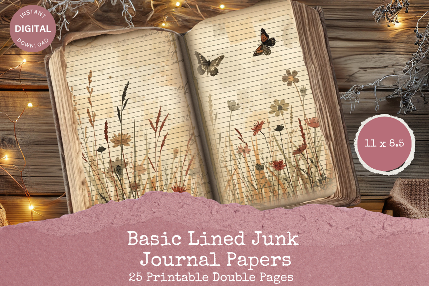 These lined junk journals are designed for simple, everyday writing and creativity. With a clean layout and soft vintage-inspired style. Whether you love decorating pages, writing daily thoughts, or collecting memories, these junk journals are a perfect lined/blank canvas.