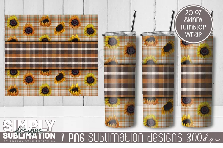 Plaid Sublimation Designs Sublimation Tumbler Tumbler Designs 20 Oz Skinny Tumbler Fall Tumbler Plaid Tumbler 20 Oz Tumbler Sunflowers Sunflower Tumbler