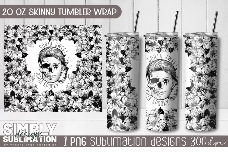 Skull Sublimation Designs Sublimation Tumbler Tumbler Designs Halloween Tumbler 20 Oz Skinny Tumbler Fall Tumbler 20 Oz Tumbler Spooky Tumbler Sorta Sweet Sorta Spooky