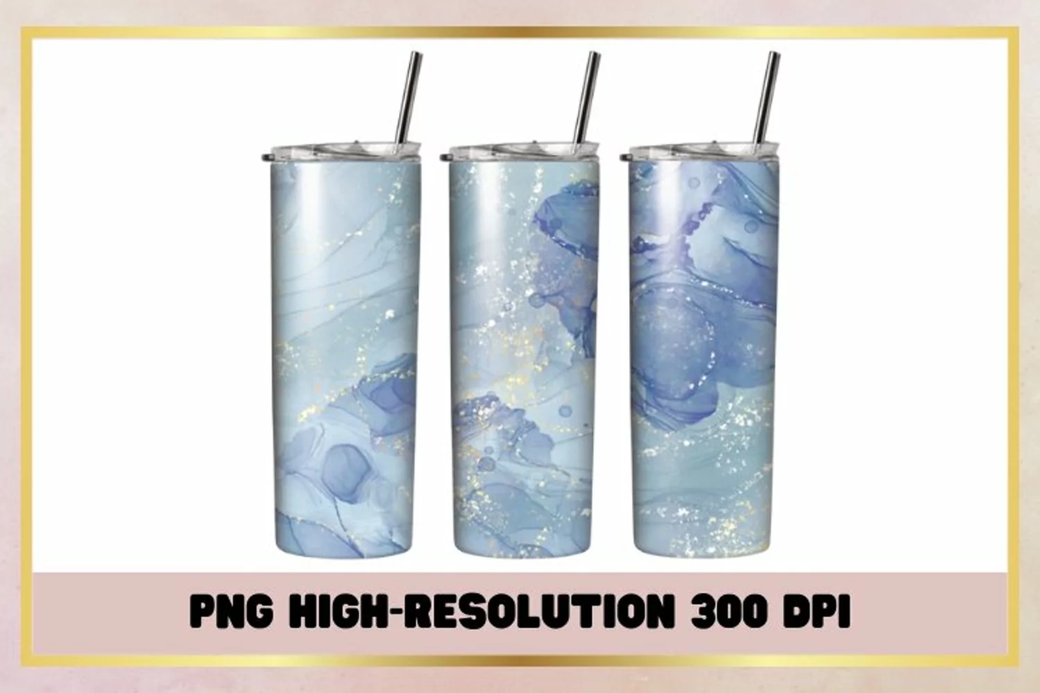 Watercolor Blue Marble Glitter 20oz Skinny Tumbler Full Wrap example image 1