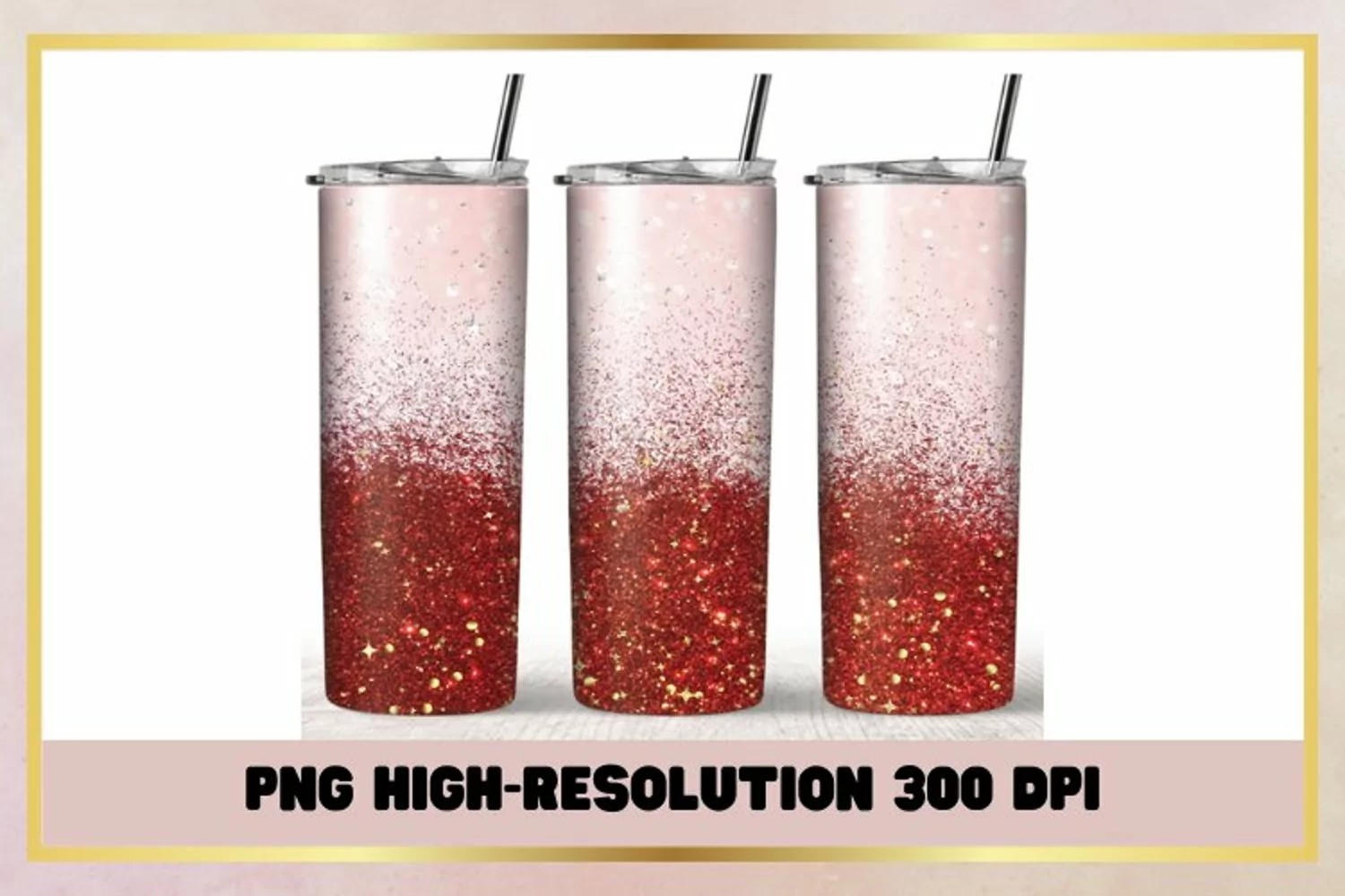 Red glitter 20oz Skinny Tumbler Sublimation Full Wrap example image 1