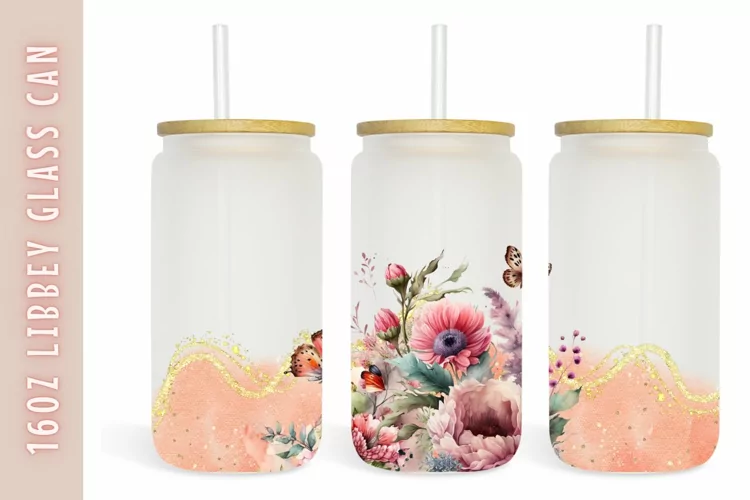 Floral Flower Flowers Watercolor Flowers Butterfly Watercolor Florals Tumbler Wrap Glass Can Wrap Libbey Glass Can Butterfly Floral Watercolor
