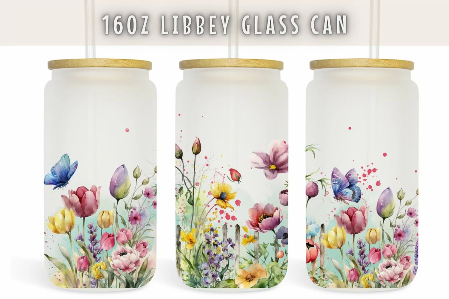Similar Design Products to Floral Butterfly Watercolor 16oz Libby Glass Can Wrap