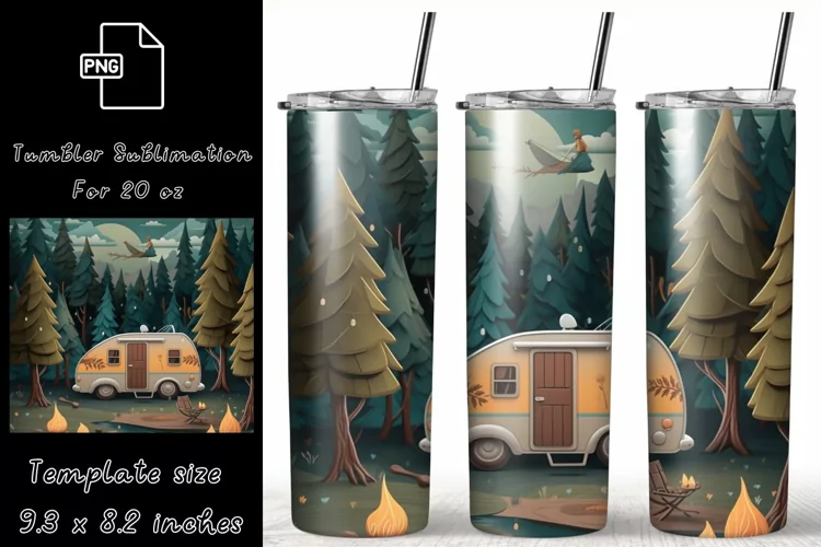 Camping 20 oz Tumbler Wrap Sublimation example image 1