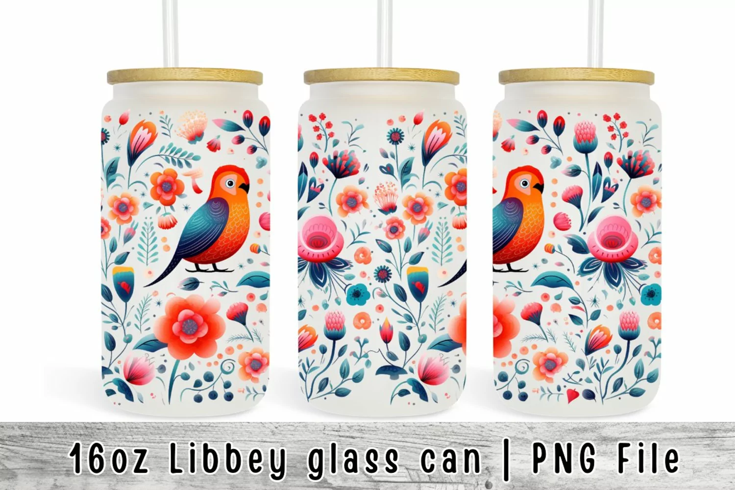 Birds Flowers Can Glass Wrap, Libbey Glass 16 oz Sublimation example image 1