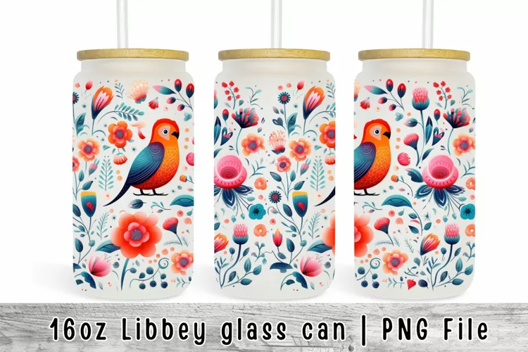 Similar Design Products to Birds Flowers Can Glass Wrap, Libbey Glass 16 oz Sublimation