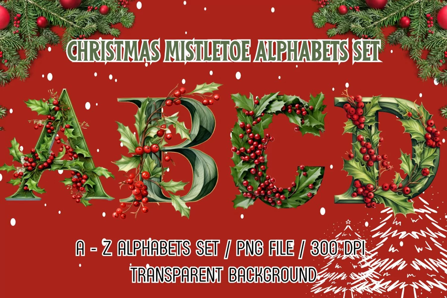 Christmas Alphabets missletoe Sublimation Clipart