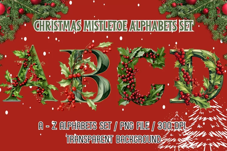 Alphabet Clipart Christmas Clipart Christmas Printable Winter Design Holiday Design Mistletoe Clipart Alphabet Design Christmas Sublimation Designs Mistletoe Design Christmas Alphabets With Mistletoe