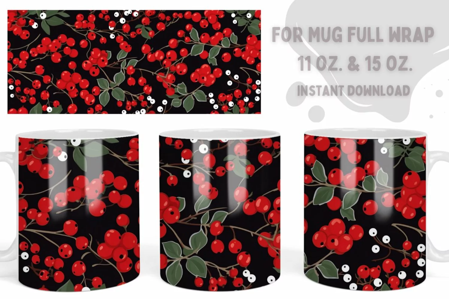 Red Berry Mug Sublimation Wrap Christmas Design example image 1