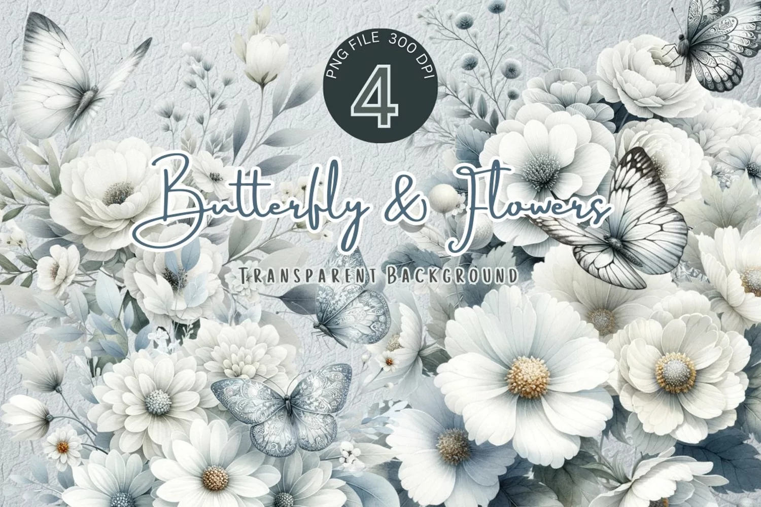 Spring FlowersWatercolor FlowersFloral DesignBotanical WatercolorButterfly IllustrationNature ClipartButterfly ArtButterfly On FlowerWhite Flora IllustrationGarden Artwork