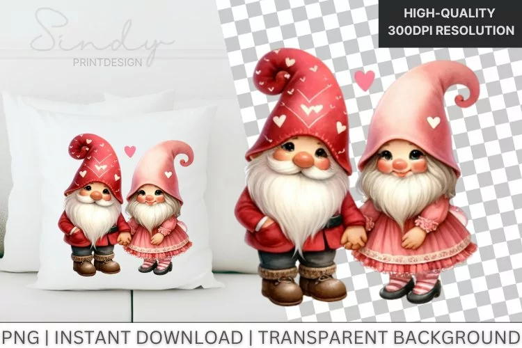 Cute Characters Collection Love-themed Gnomes Watercolor Gnome Art Romantic Gnome Clipart Cute Gnome Characters Digital Download Gnomes Valentine's Watercolor Art Valentine's Couple Clipart Cute Valentine's Collection Festive Love Gnomes