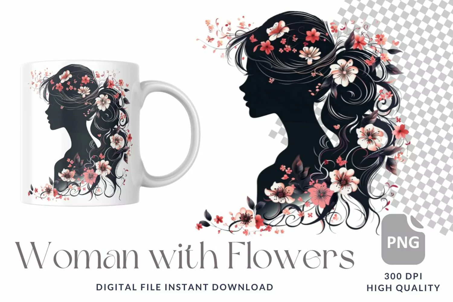 Similar Design Products to Floral Woman Clipart, Printable Watercolor clipart