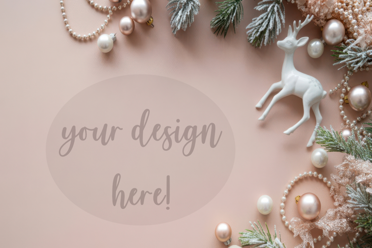Holiday Background Christmas Decor Elegant Christmas Pink Christmas Pastel Christmas Winter Mockup Christmas Flatlay Christmas Composition Festive Flatlay Pearl Ornaments