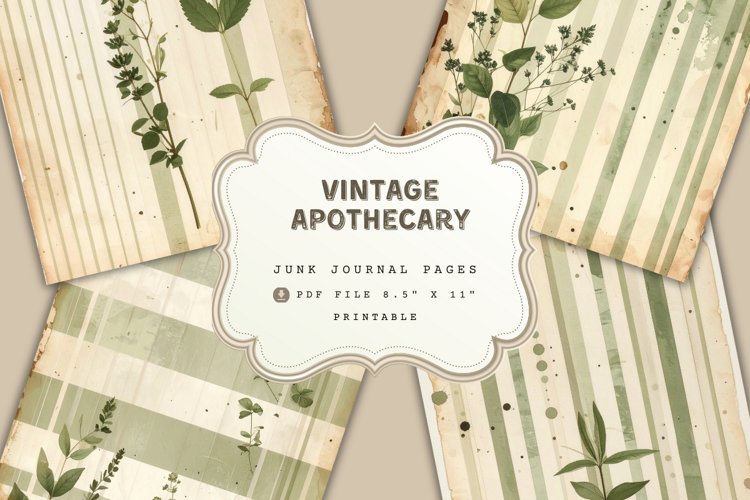 Similar Design Products to Apothecary junk journal page, Muted olive and cream striped