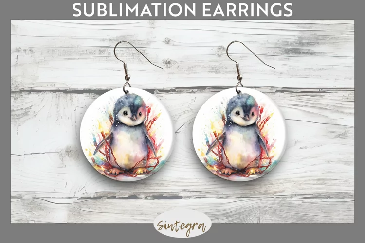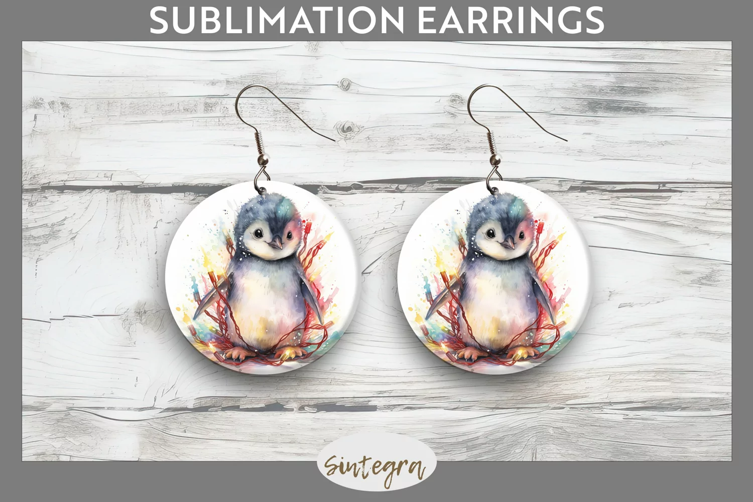 Christmas Sublimation Funny Christmas Round Earrings Sublimation Image Earrings Template Christmas Sublimation Png Sublimation Print Sublimation Earrings Sublimation Round Earrings Penguin Animal Entangled In Lights