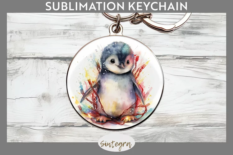 Christmas Sublimation Funny Christmas Sublimation Image Christmas Sublimation Png Sublimation Print Keychain Template Sublimation Keychain Round Keychain Png Sublimation Round Keychain Penguin Animal Entangled In Lights