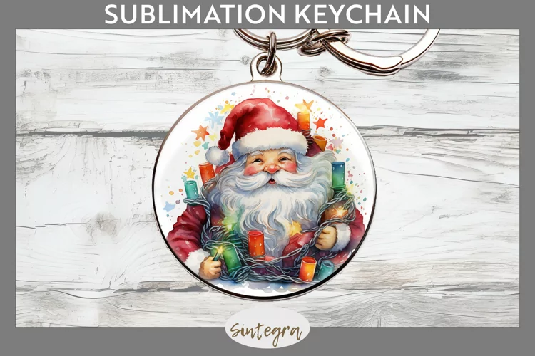 Christmas Sublimation Funny Christmas Sublimation Image Christmas Sublimation Png Sublimation Print Keychain Template Sublimation Keychain Round Keychain Png Sublimation Round Keychain Santa Claus Entangled In Lights
