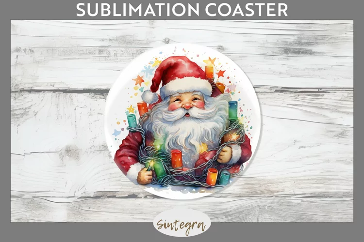 Christmas Sublimation Funny Christmas Sublimation Image Christmas Sublimation Png Sublimation Print Coaster Template Sublimation Coaster Sublimation Round Coaster Round Coaster Png Santa Claus Entangled In Lights