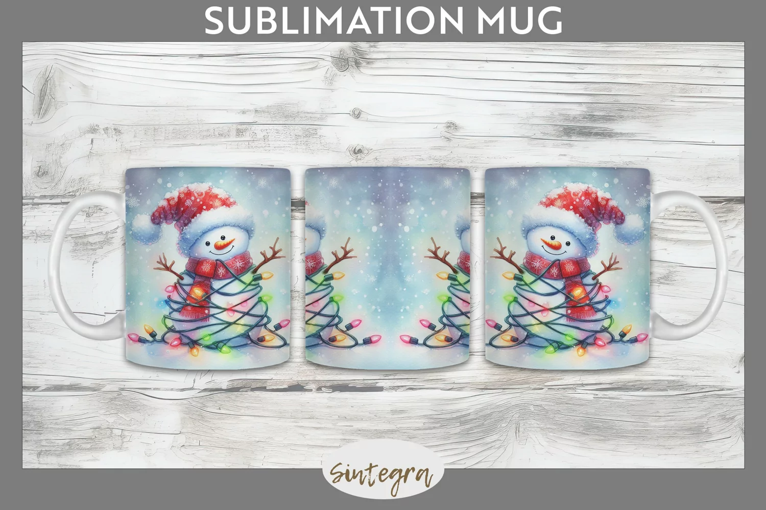 Christmas Snowman Entangled in Lights Mug Wrap Sublimation example image 1