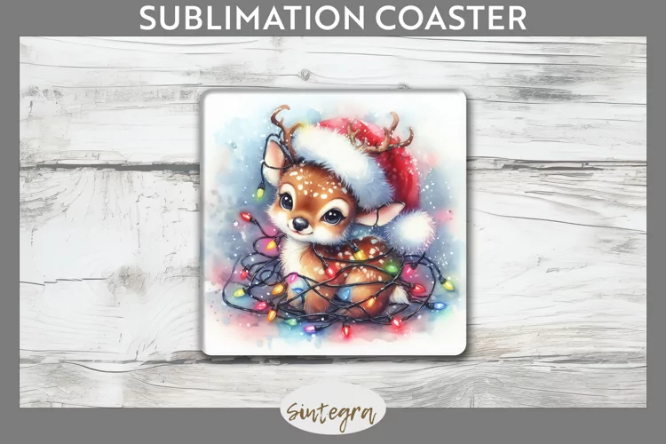 Similar Design Products to Christmas Deer Entangled in Lights Square Coaster Sublimatio